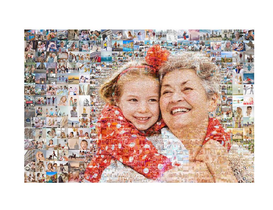 - El diseño multifoto se componen de 1000 fotografías en tamaño reducido para forma una imagen principal.